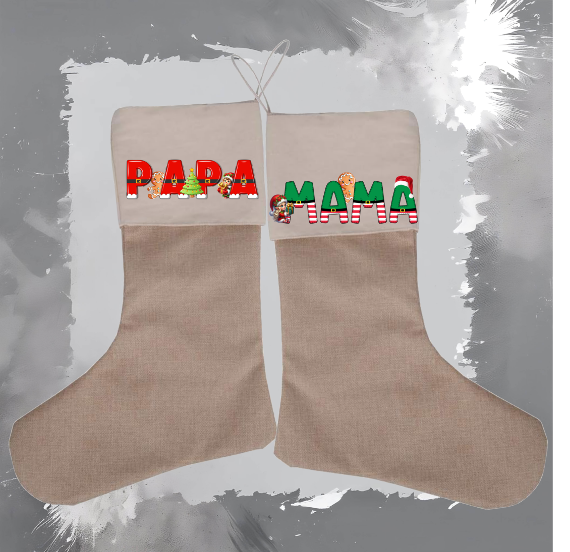 Wunderschöne individualisierte, handgemachte Nikolausstrümpfe mit praktischer Aufhänge-Schlaufe.